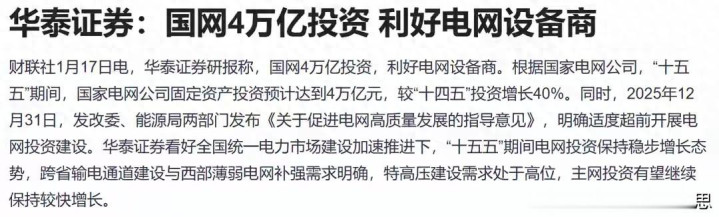 这4万亿投资可不是虚的,国家电网明确表示,资金将重点投向科技创新和新型电力系统建设,支撑“沙戈荒”清洁能源基地开发外送,还要满足3500万台充电设施接入需求。国信证券分析,这将拉动特高压、主网设备、配网升级等多个板块,电网建设已经进入高强度投资的黄金周期。